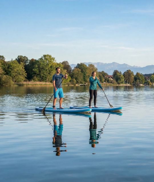 Unsere hochwertigen Stand-Up-Paddle-Boards (SUPs) stehen für ein entspanntes und sportliches Erlebnis auf dem Wasser. Die Boards können direkt bei uns in Leoni oder bei unserem Partner in Starnberg ausgeliehen werden. Bitte beachten Sie, dass unsere sportlichen SUP-Boards auf Performance und Stabilität ausgelegt sind und keine zusätzlichen Befestigungsmöglichkeiten für Zubehör besitzen. Aktuell verleihen wir insgesamt 5 SUP-Boards.